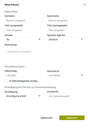 - Es öffnet sich eine neue Maske, in der du die Daten der Person erfassen kannst.