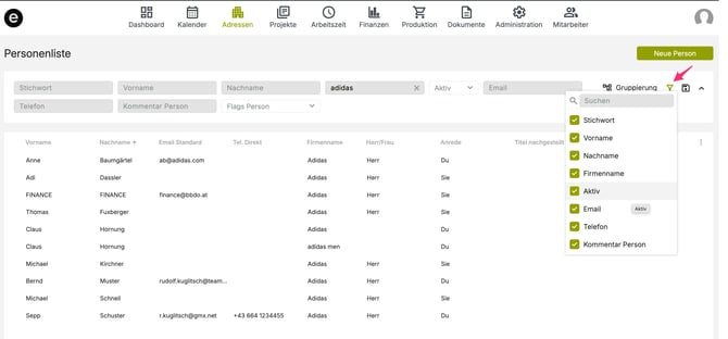 Filtern in der Personenliste