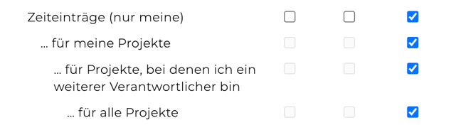 Welche Berechtigung ist nötig, um alle Zeiteinträge eines Projekts zu sehen?