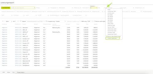 Wie kann ich im neuen Leistungsreport den Zeitraum auswählen, so wie in der bisherigen Zeitauswertung?
